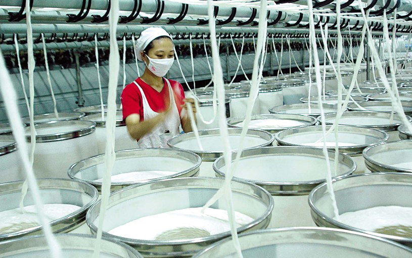 紡織印染有機矽消泡劑是根據高溫紡織漿料、印染顏料、塗料色漿、印染(rǎn)前處理的工(gōng)藝消泡劑。本(běn)品以改性聚醚矽為主要材料(liào)經過特(tè)殊工藝而(ér)成,在漿料過程中有很好的消(xiāo)泡作用和性能,在紡織上漿同樣有很(hěn)好的控製泡沫的(de)作用。特點是:中(zhōng)高溫酸堿條件下能迅速消泡。它既能在漿料過程中有很(hěn)好的消泡作用,在紡織上(shàng)漿同樣有很好除去泡沫的作(zuò)用。